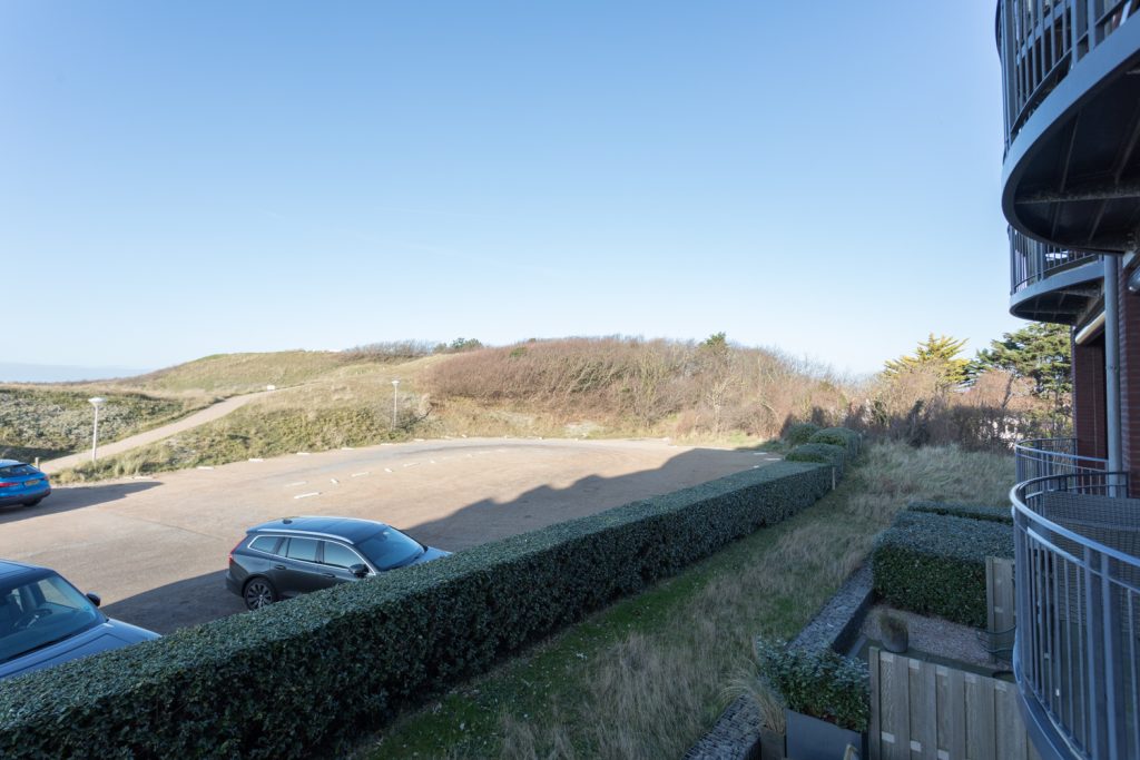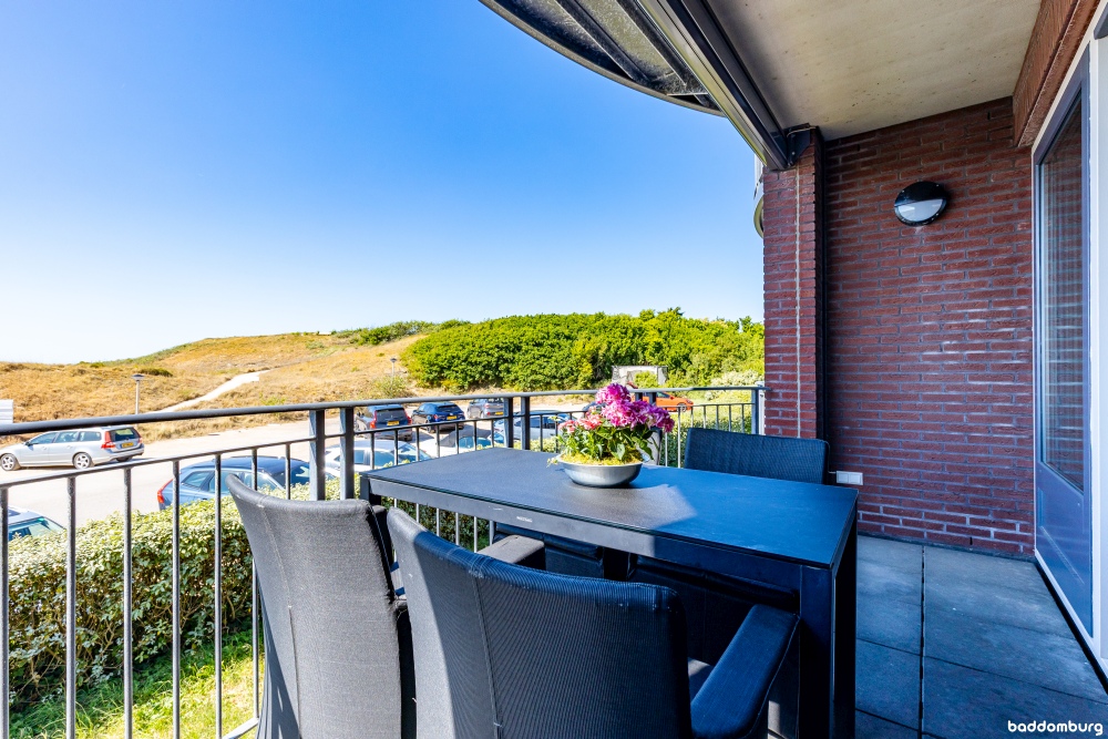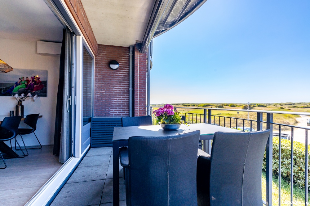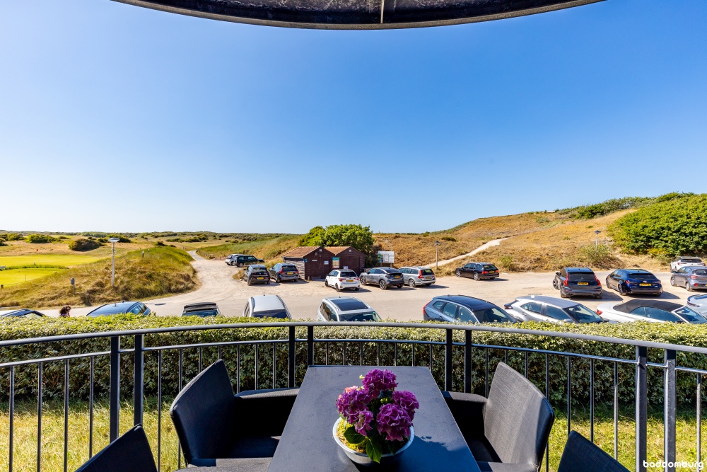 - Balkon op het noordwesten met middag/avondzon en uitzicht op de duinen en Domburgse golfbaan